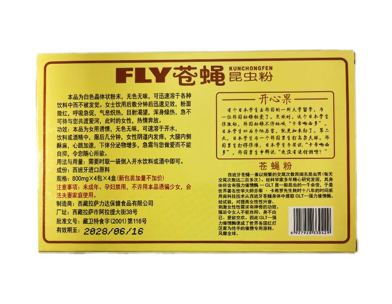 「サディズム」という言葉の語源として有名な、18世紀のフランス貴族「サド侯爵」マルキ・ド・サドも、スパニッシュフライの粉末を媚薬として用いていたとの記録が残されています。 - 使用方法